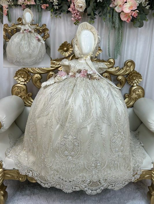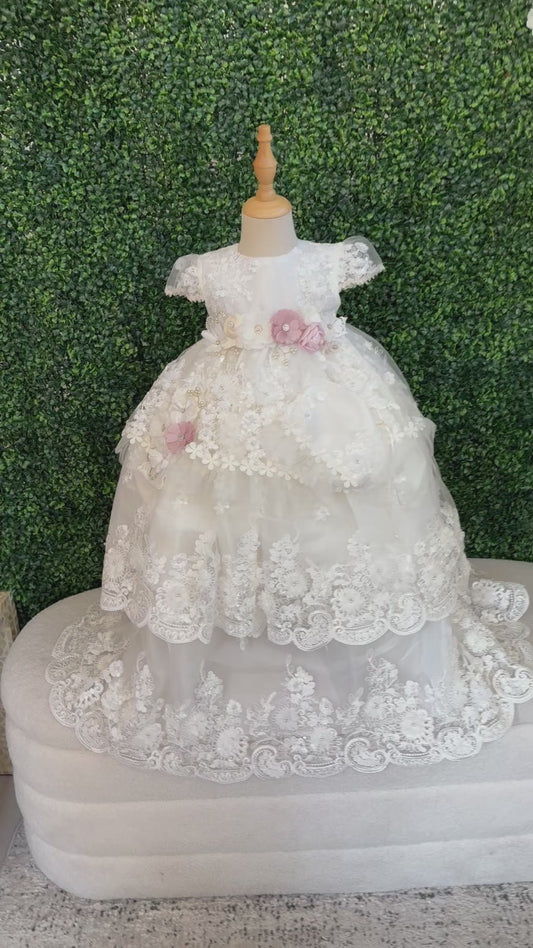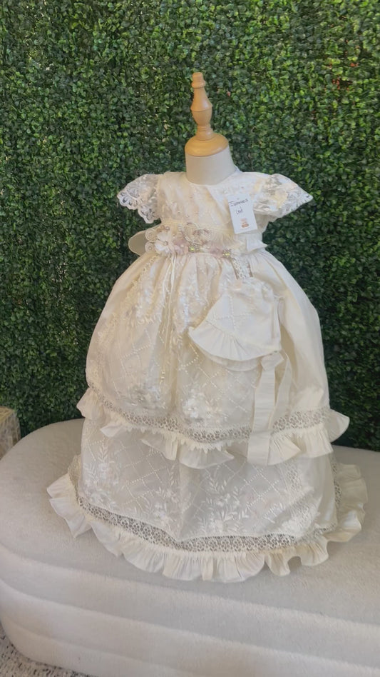 Our Girl Ropón Collection features elegant baptism and christening gowns inspired by traditional Spanish design. Each ropón is thoughtfully crafted with delicate lace, soft fabrics, and timeless details to create a graceful and meaningful look for your little one’s special day.