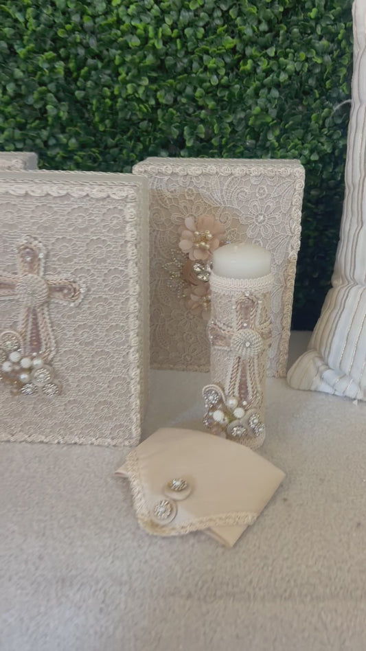 Our Baptism Candle Set Collection features beautifully crafted sets designed to honor this special sacrament. Each set includes a decorated candle, towel, and shell, with select candle sets also including a Bible. Thoughtfully presented for a meaningful celebration, these sets combine tradition, elegance, and lasting keepsake value—perfect for baptisms and religious ceremonies.
