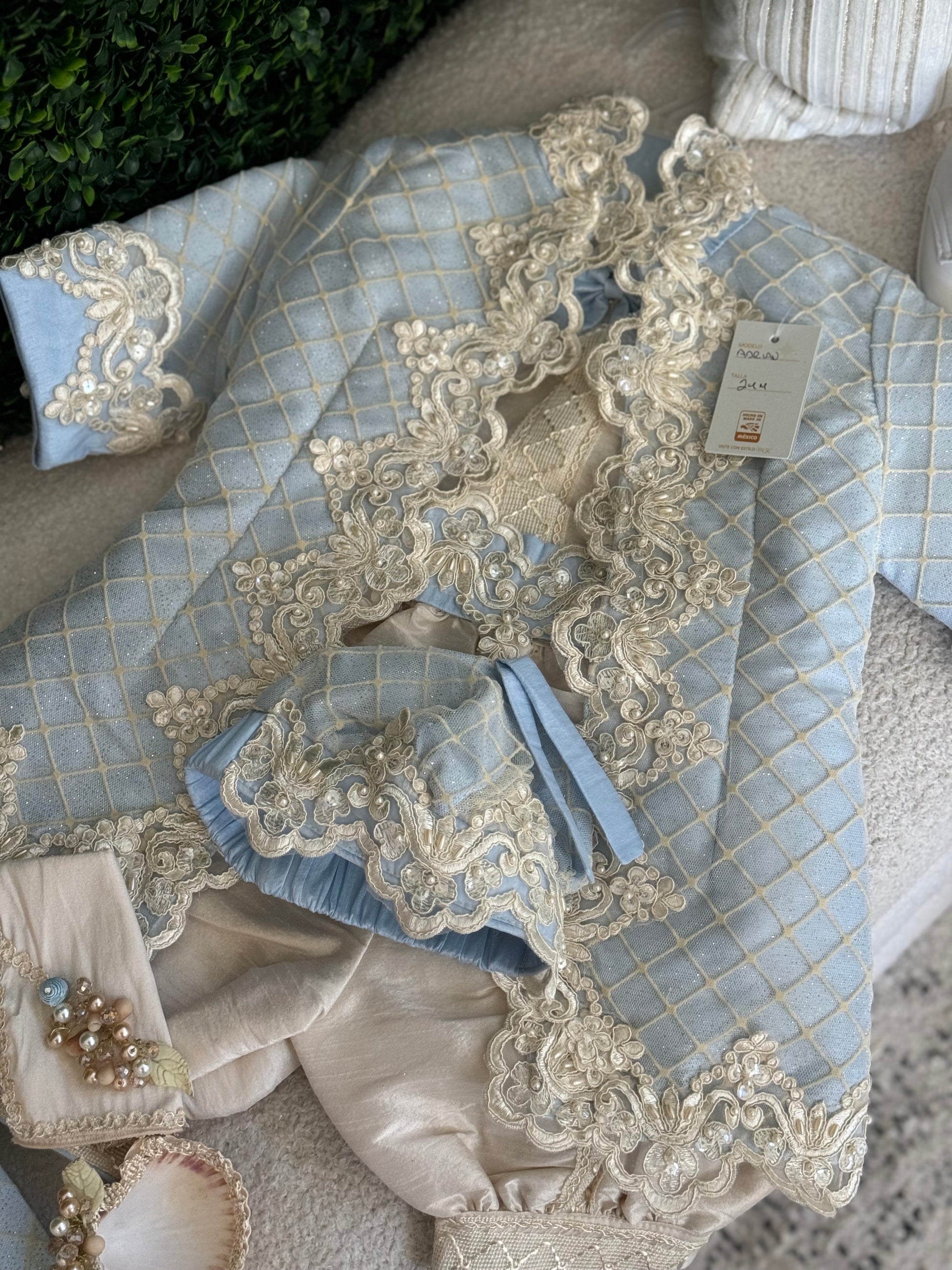 This ropón romper style is designed to blend traditional elegance with modern comfort. Featuring a refined romper silhouette, it offers a polished ceremonial look while allowing ease of movement for your little one.