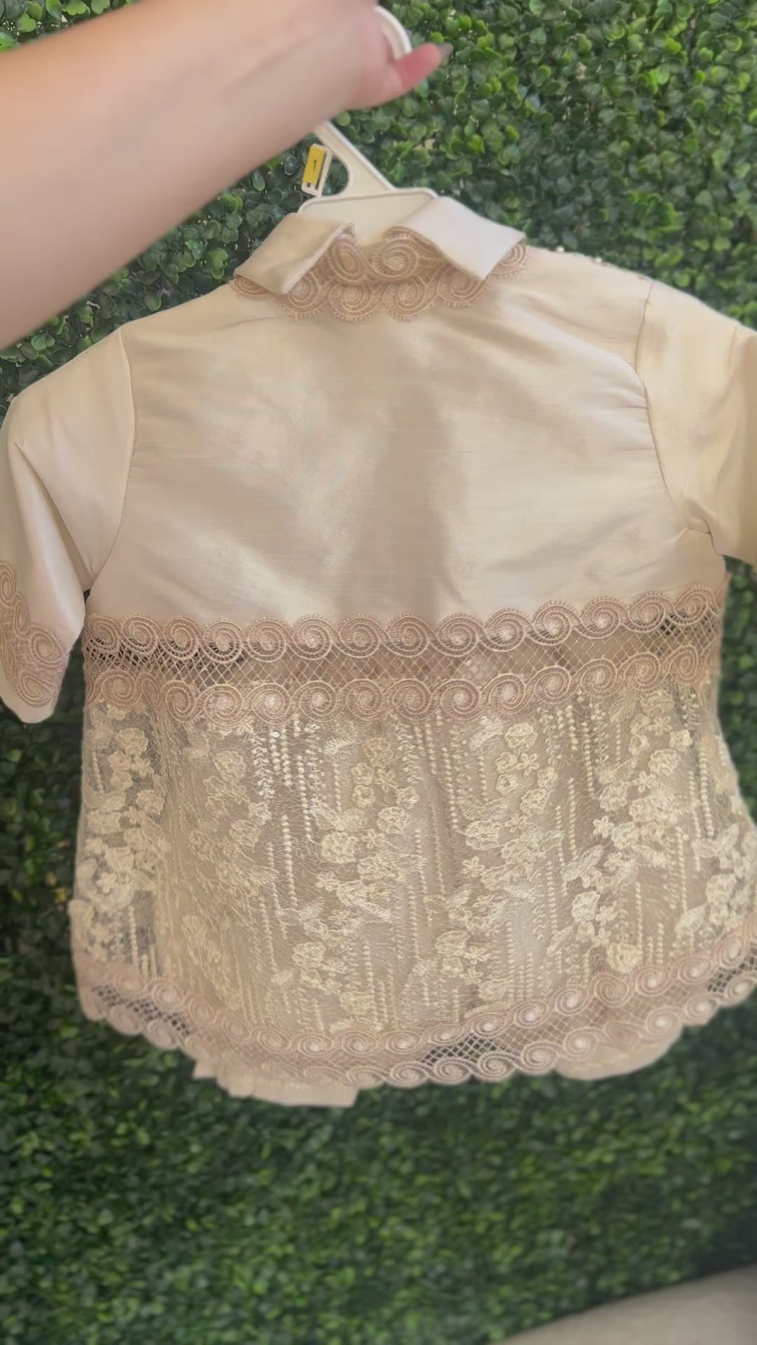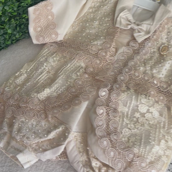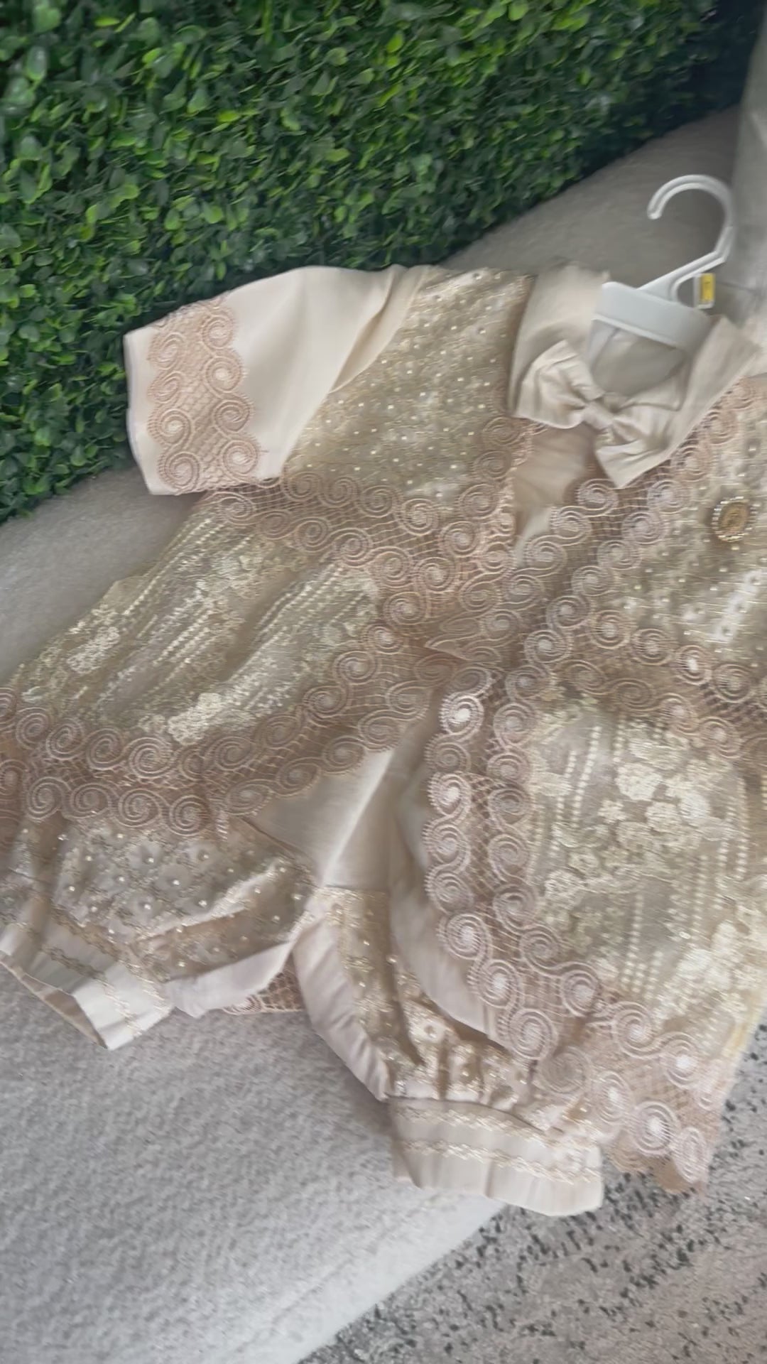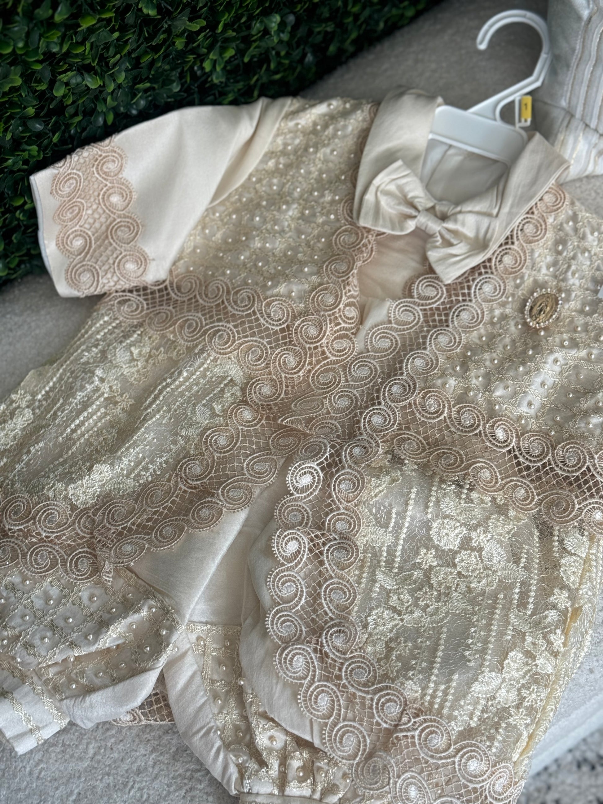 This ropón romper style is designed to blend traditional elegance with modern comfort. Featuring a refined romper silhouette, it offers a polished ceremonial look while allowing ease of movement for your little one.