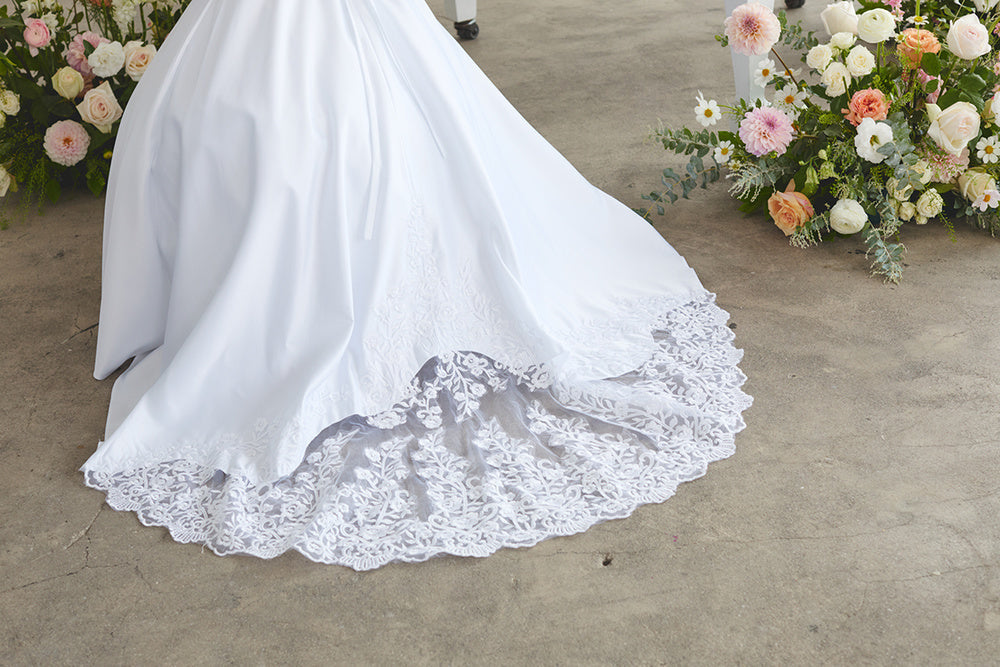 Girls Satin Bodice Lace Applique and Tail with Lace