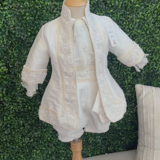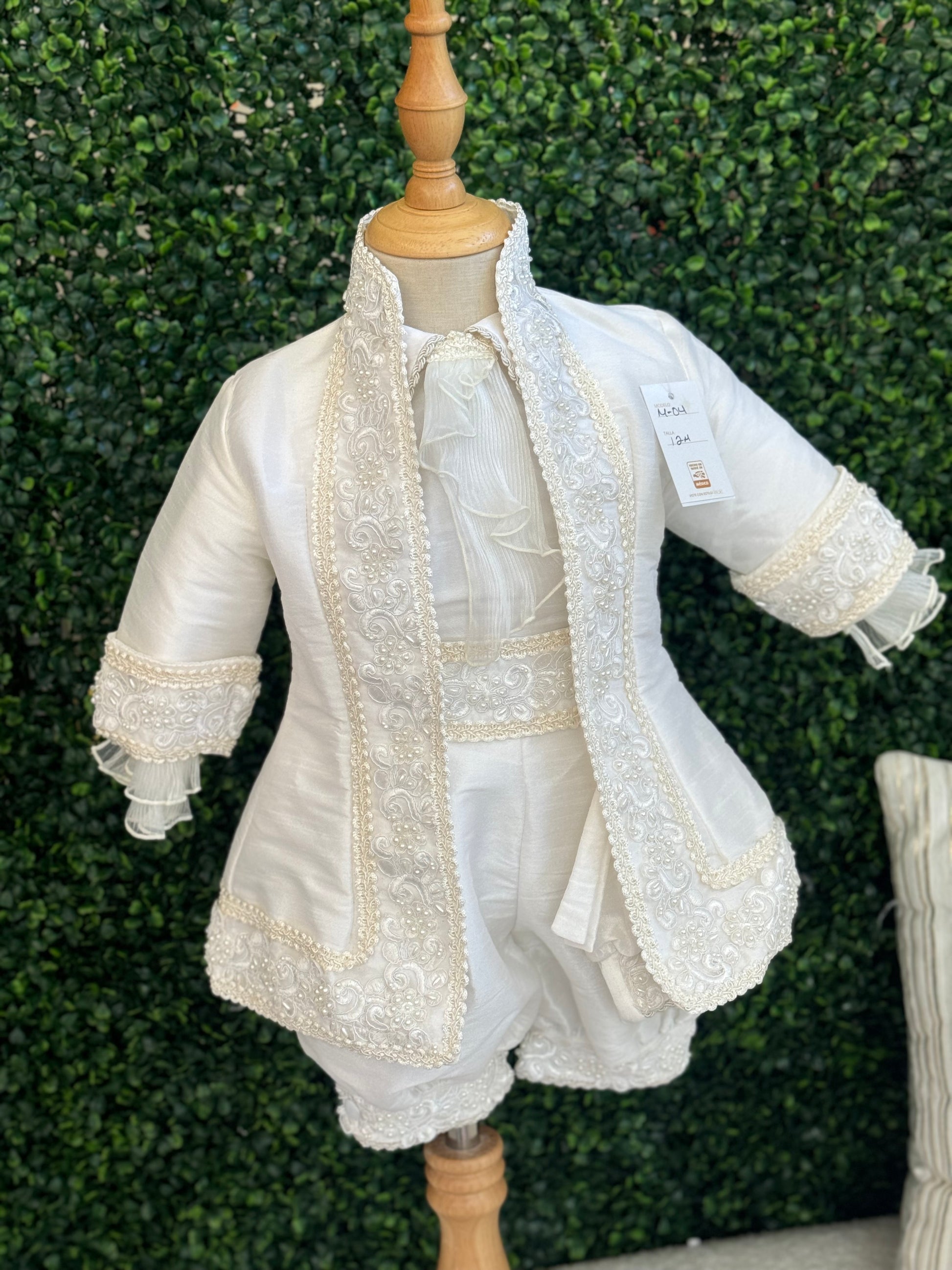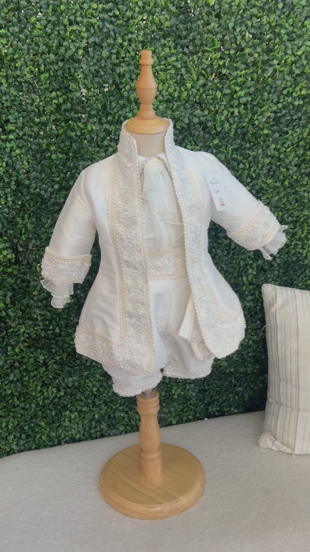 This ropón romper style is designed to blend traditional elegance with modern comfort. Featuring a refined romper silhouette, it offers a polished ceremonial look while allowing ease of movement for your little one.