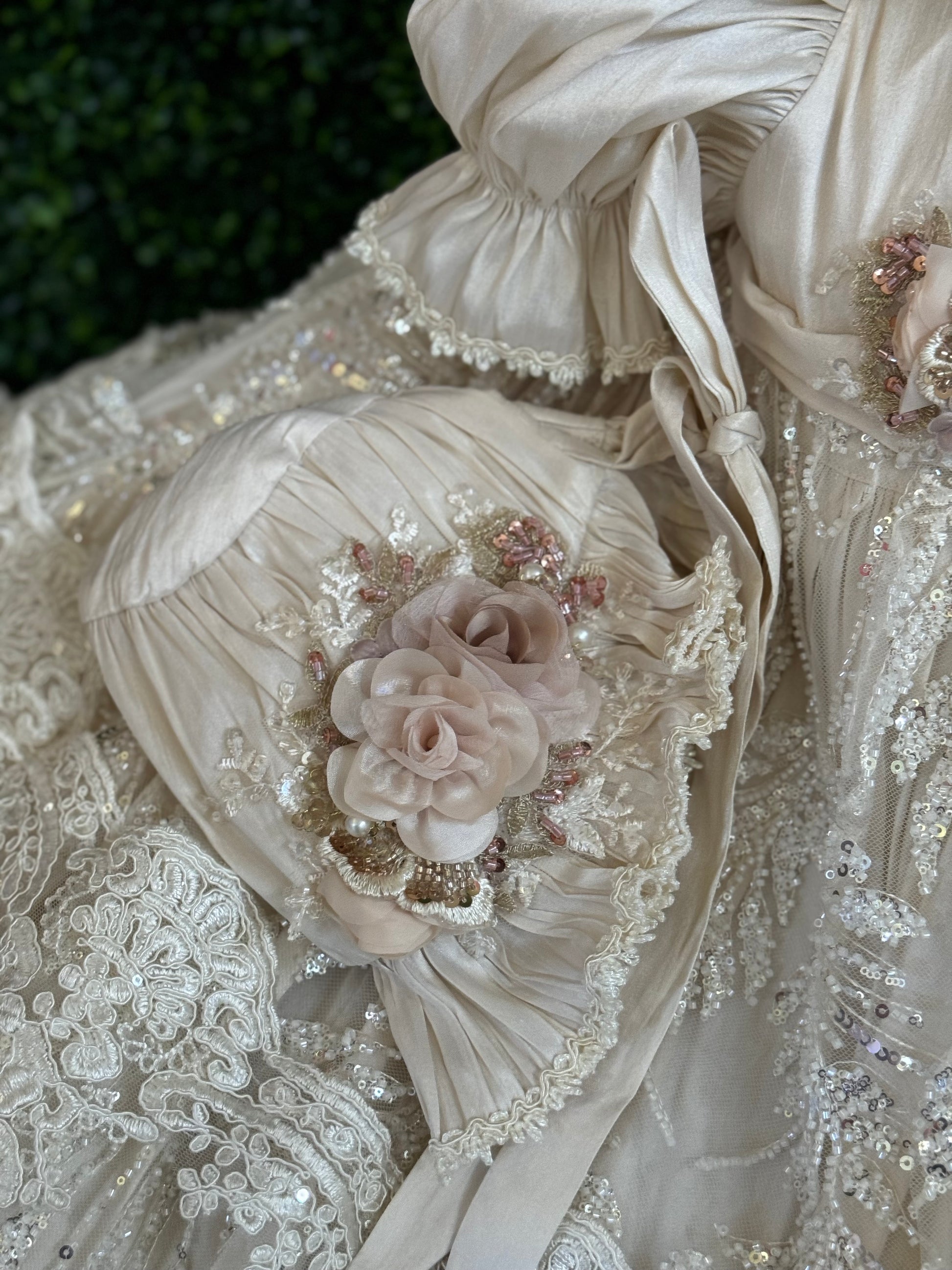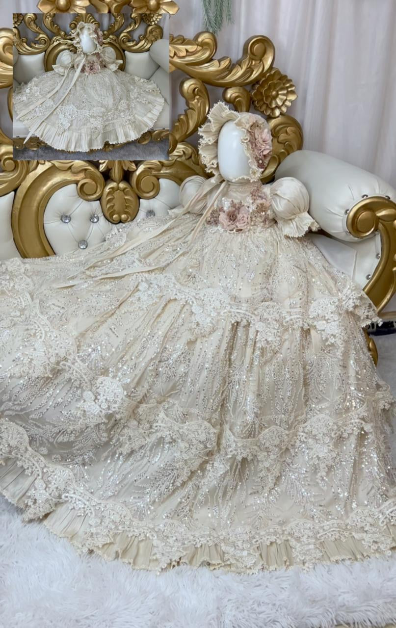 Our 2-in-1 ropones are designed for versatility and elegance. This style features a removable or transformable skirt, allowing the ropón to be worn as a long traditional gown and later as a shorter dress. Perfect for ceremonies and post-event celebrations, offering beauty and practicality in one timeless design.