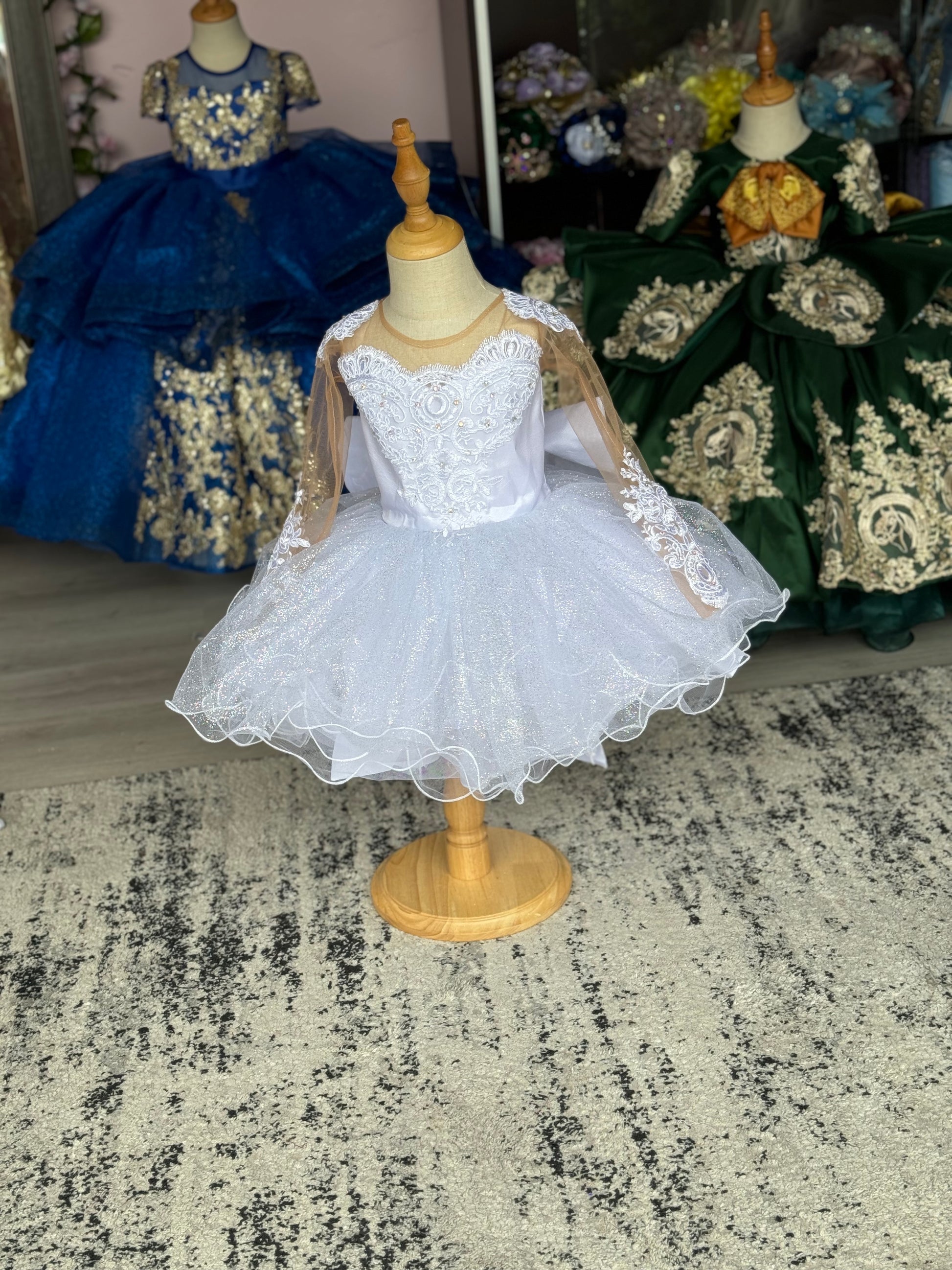Each custom-made dress for your little princess is handcrafted with care and attention to detail. Because of the custom nature of our work, there may be slight variations in the tone of color and the saturation of glitter a fabric may bring. These differences are normal and part of what makes each dress truly unique and one of a kind.