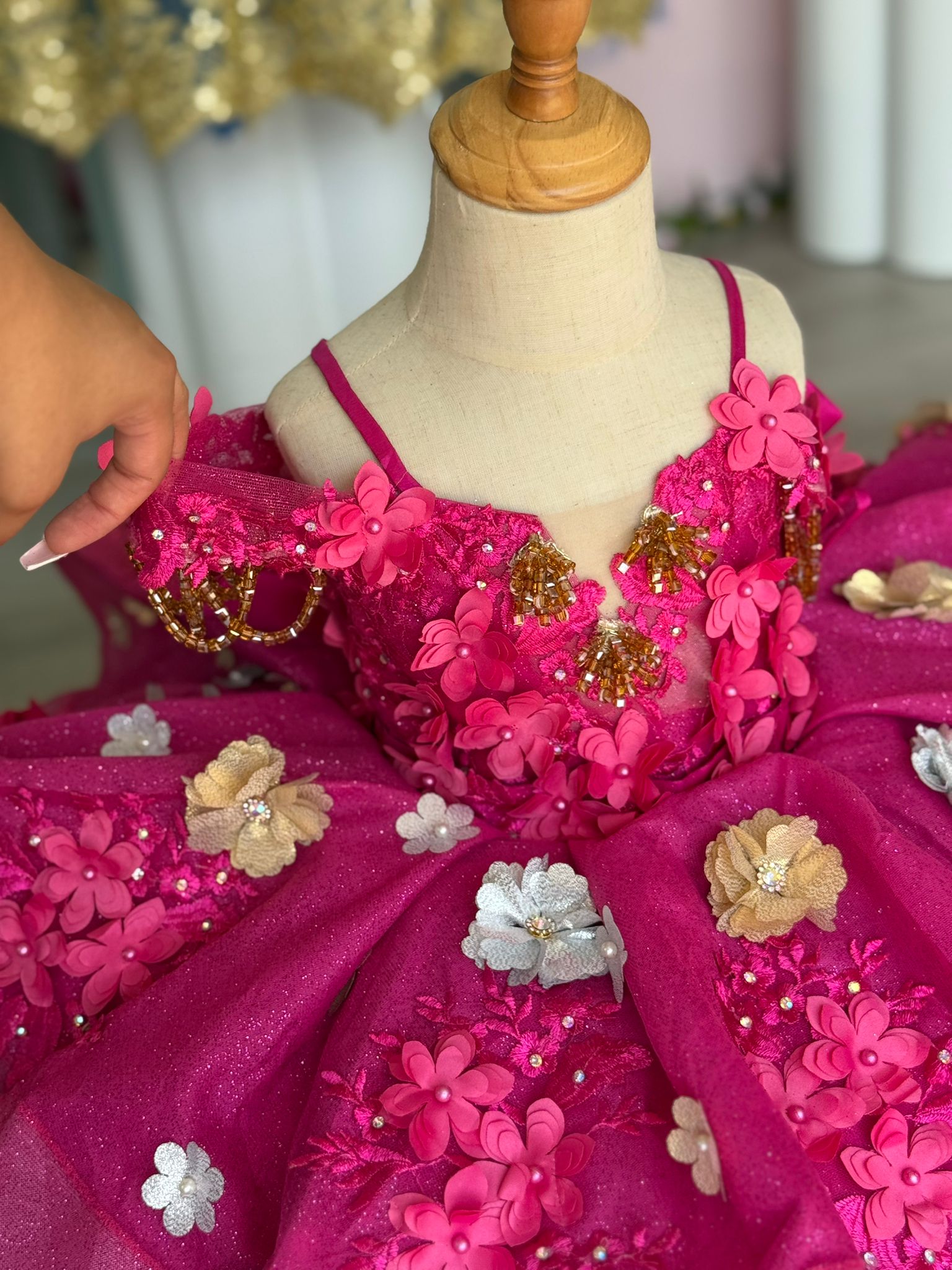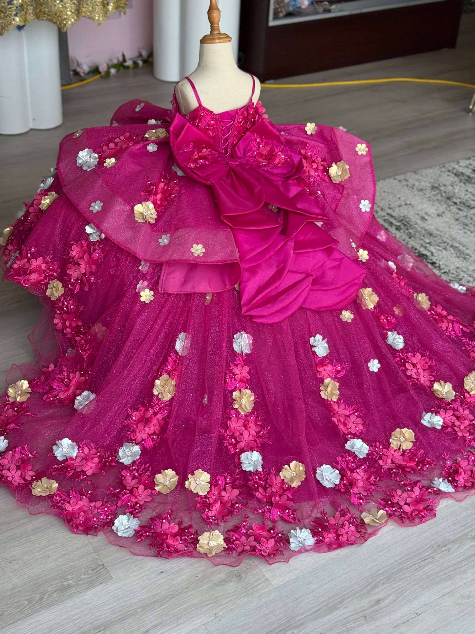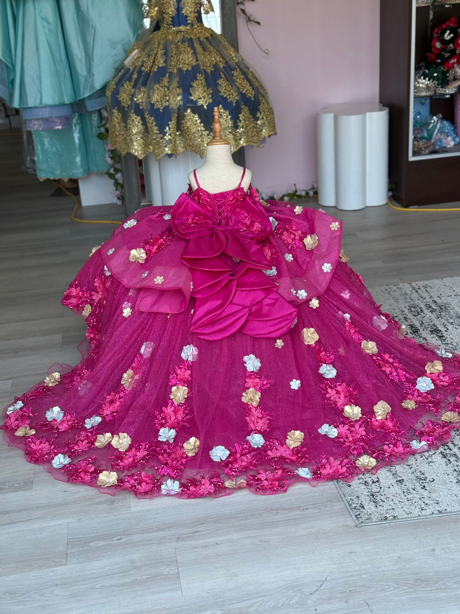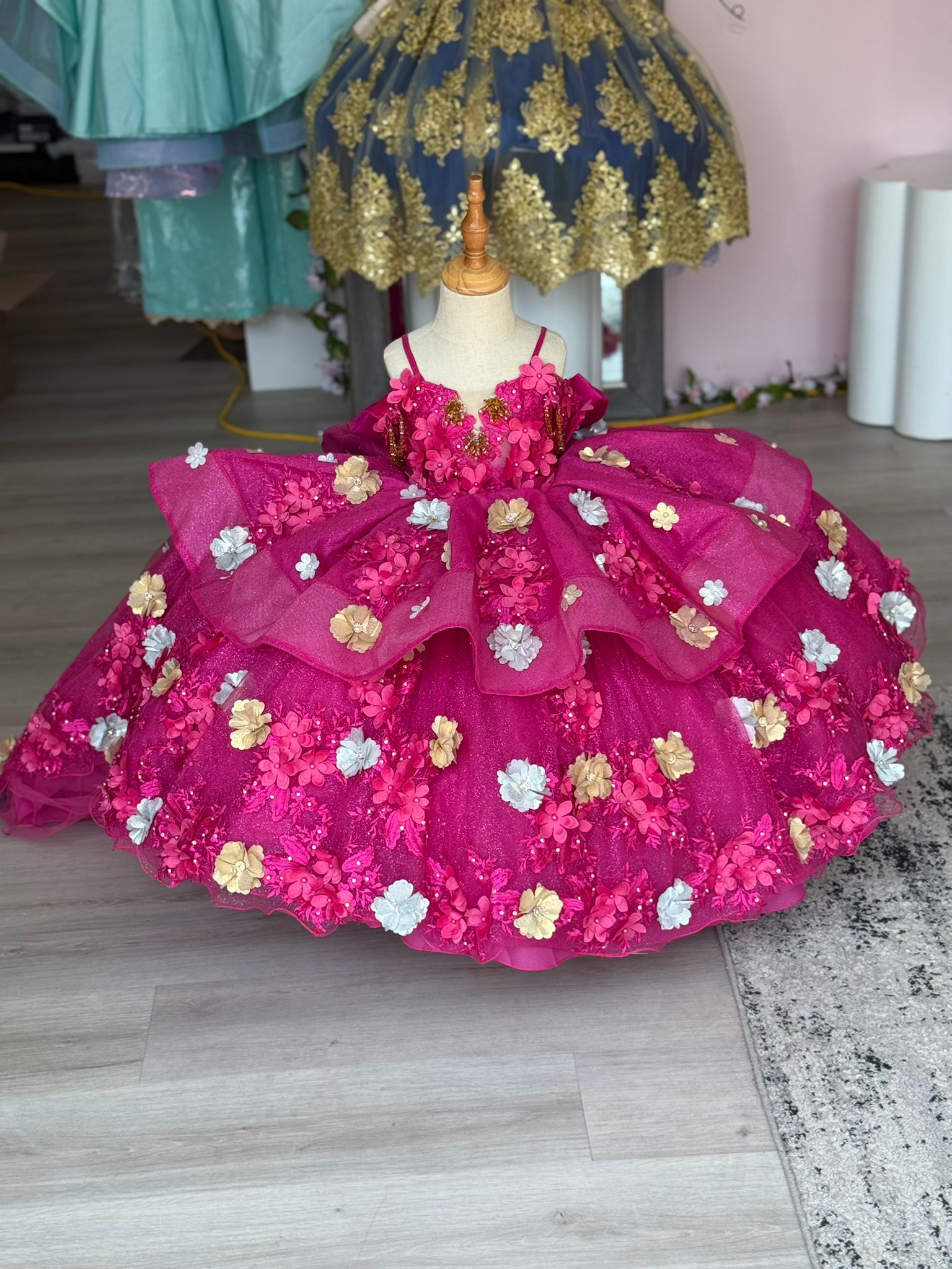 Each custom-made dress for your little princess is handcrafted with care and attention to detail. Because of the custom nature of our work, there may be slight variations in the tone of color and the saturation of glitter a fabric may bring. These differences are normal and part of what makes each dress truly unique and one of a kind.