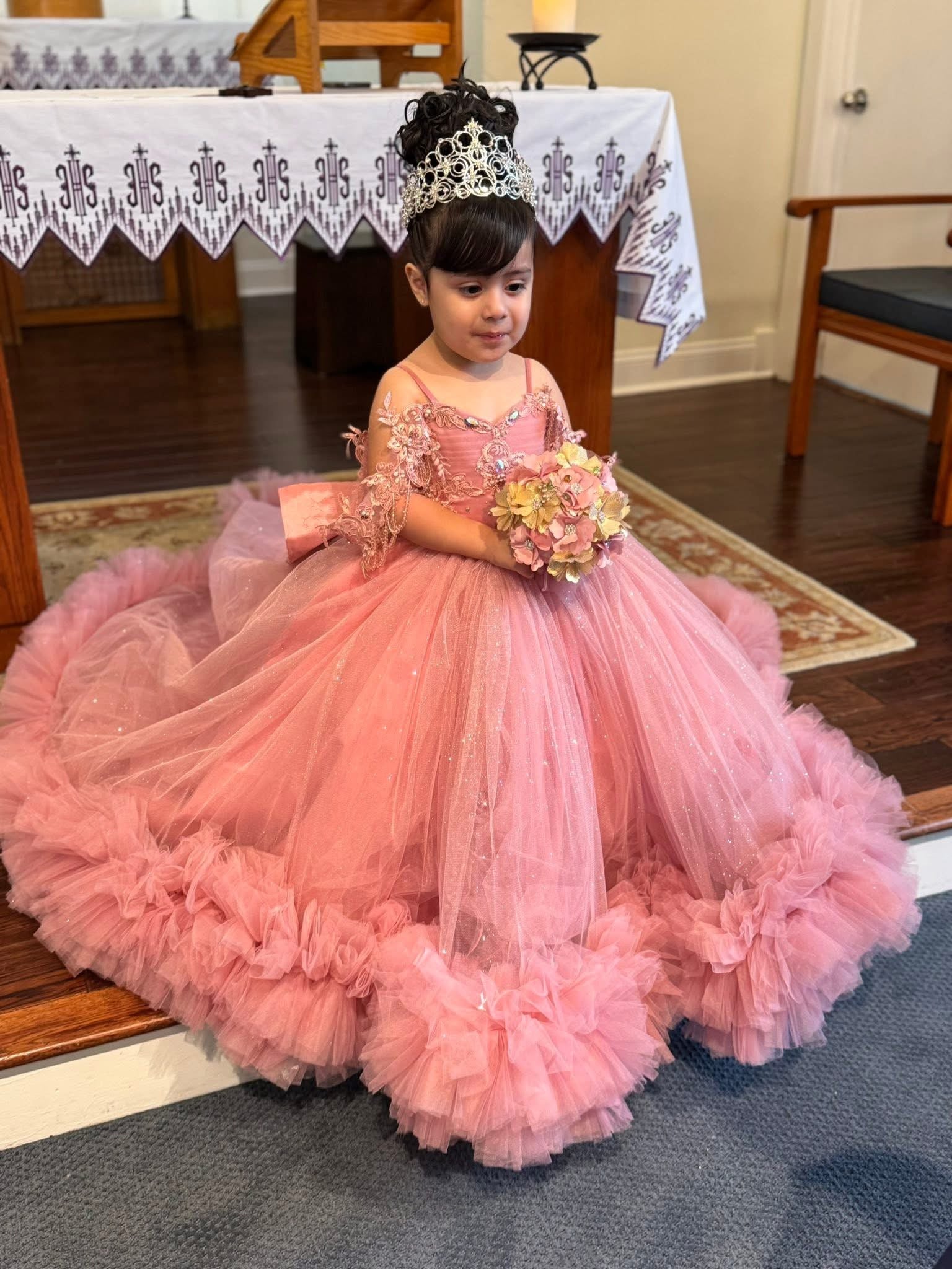 Each custom-made dress for your little princess is handcrafted with care and attention to detail. Because of the custom nature of our work, there may be slight variations in the tone of color and the saturation of glitter a fabric may bring. These differences are normal and part of what makes each dress truly unique and one of a kind.
